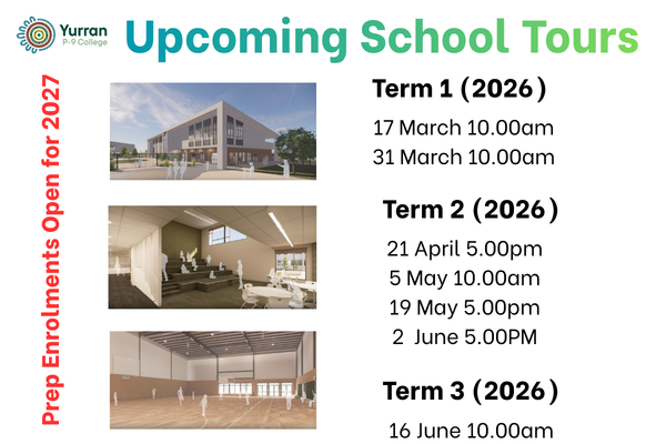 We are conducting a number of school tours over the coming months to share what makes Yurran P-9 College unique and wonderful, so we encourage prospective families to register for a tour.