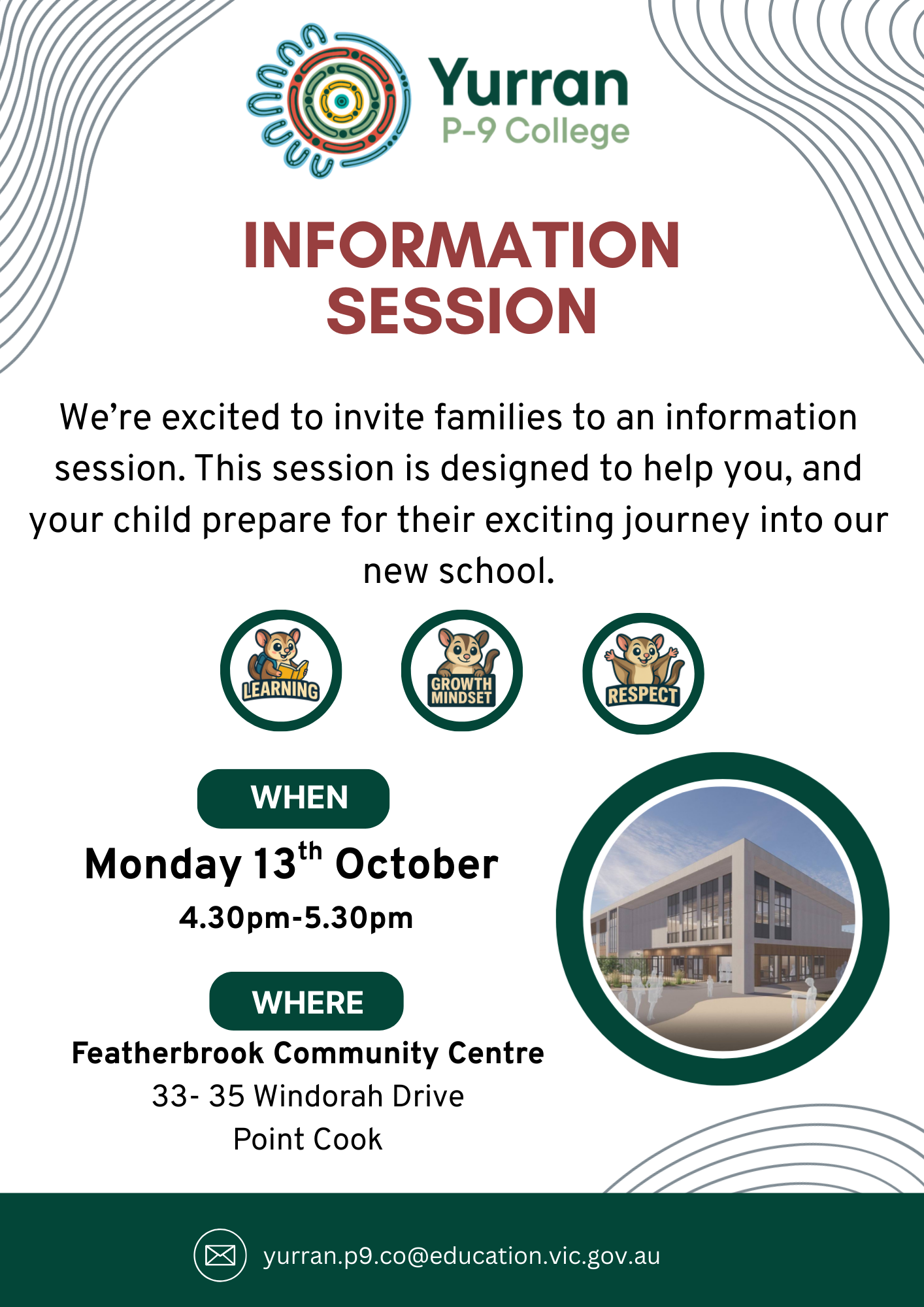 We're excited to invite families to an information session. This session is designed to help you, and your child prepare for their exciting journey into our new school.